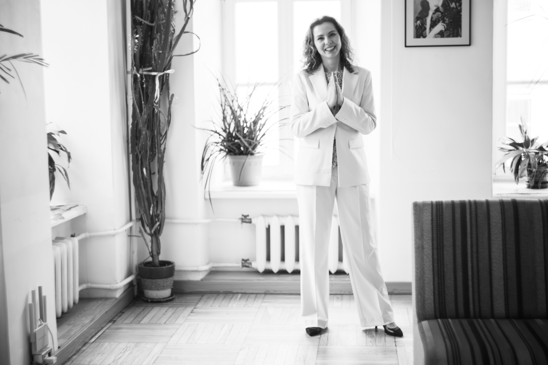 Настя напомнила мне кинодиву 50-х годов. Съёмка проходила в реальном кабинете в историческом особняке, где сейчас располагается Международная Академия Гештальта, где сама атмосфера пространства диктовала настроение.